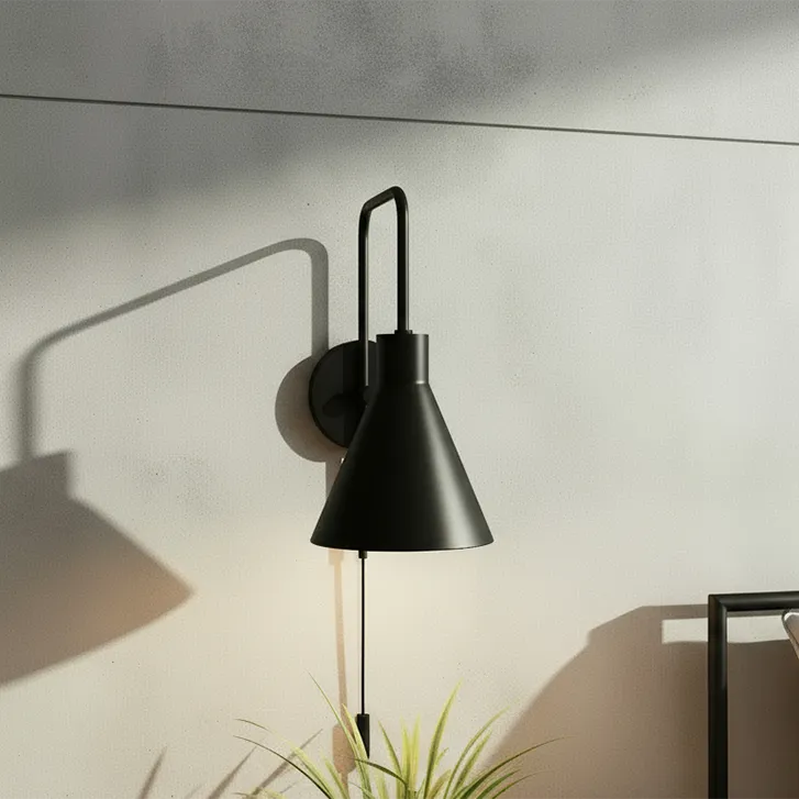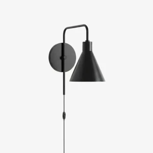 Czarna lampa ścienna kinkiet z kloszem stożkowym