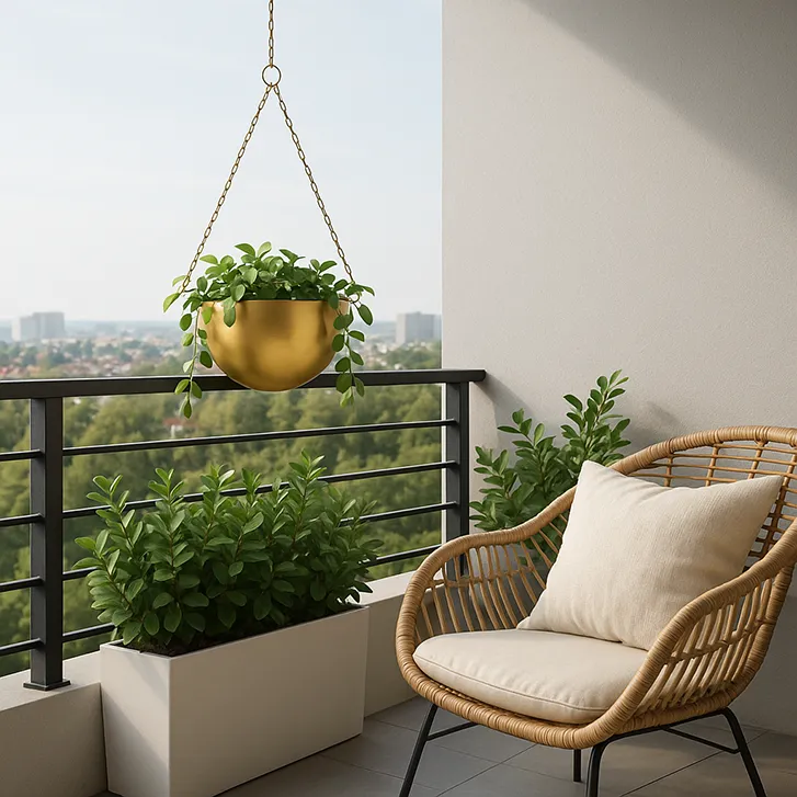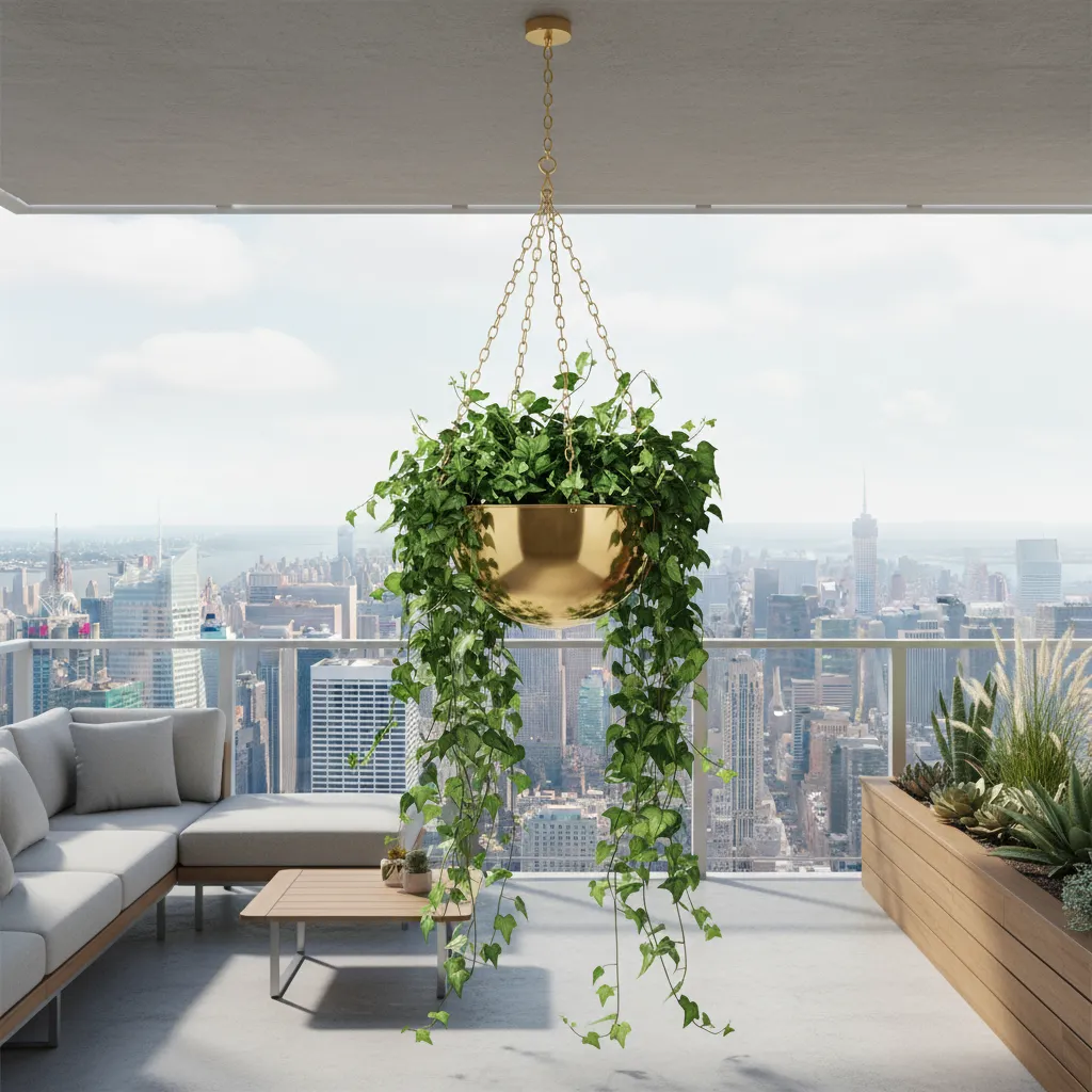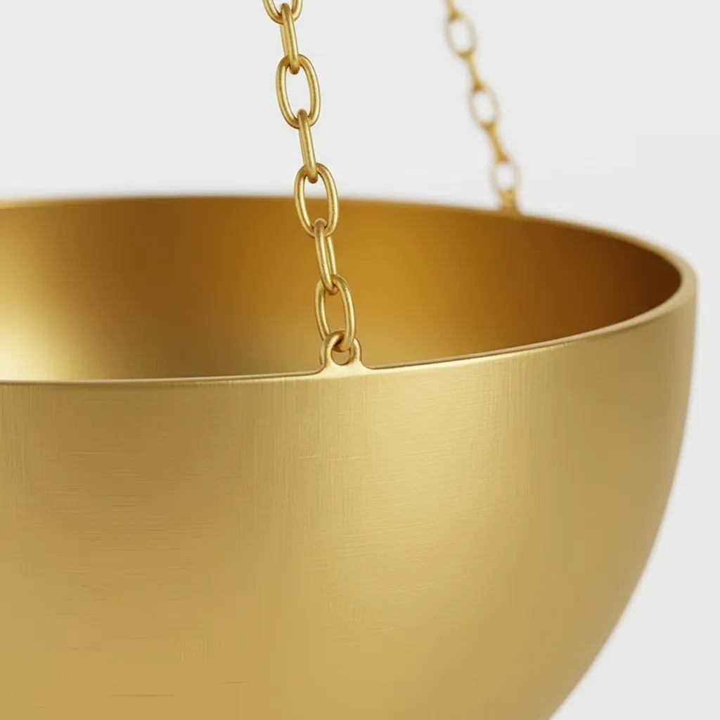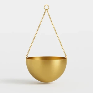 Doniczka wisząca metalowa złota z łańcuszkiem