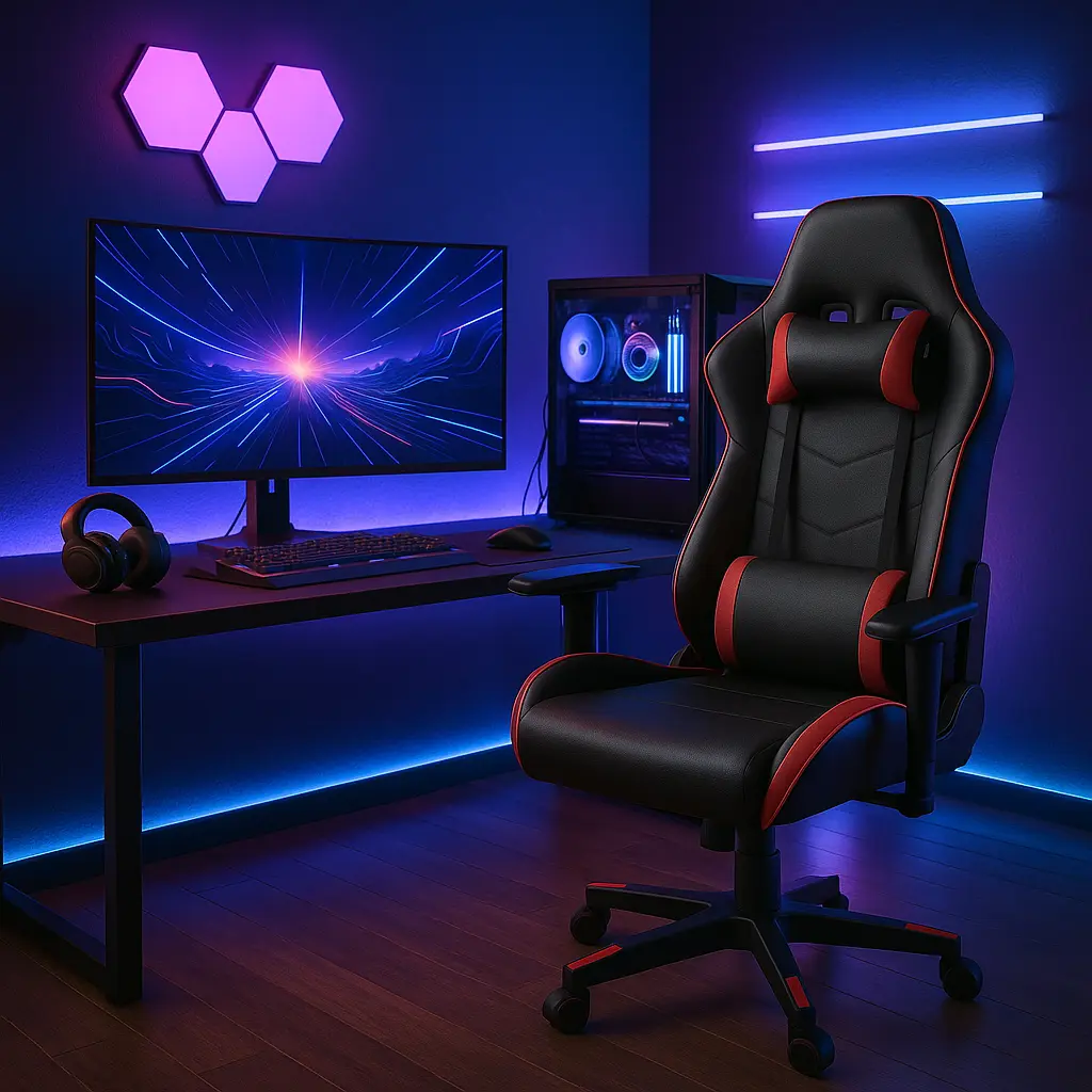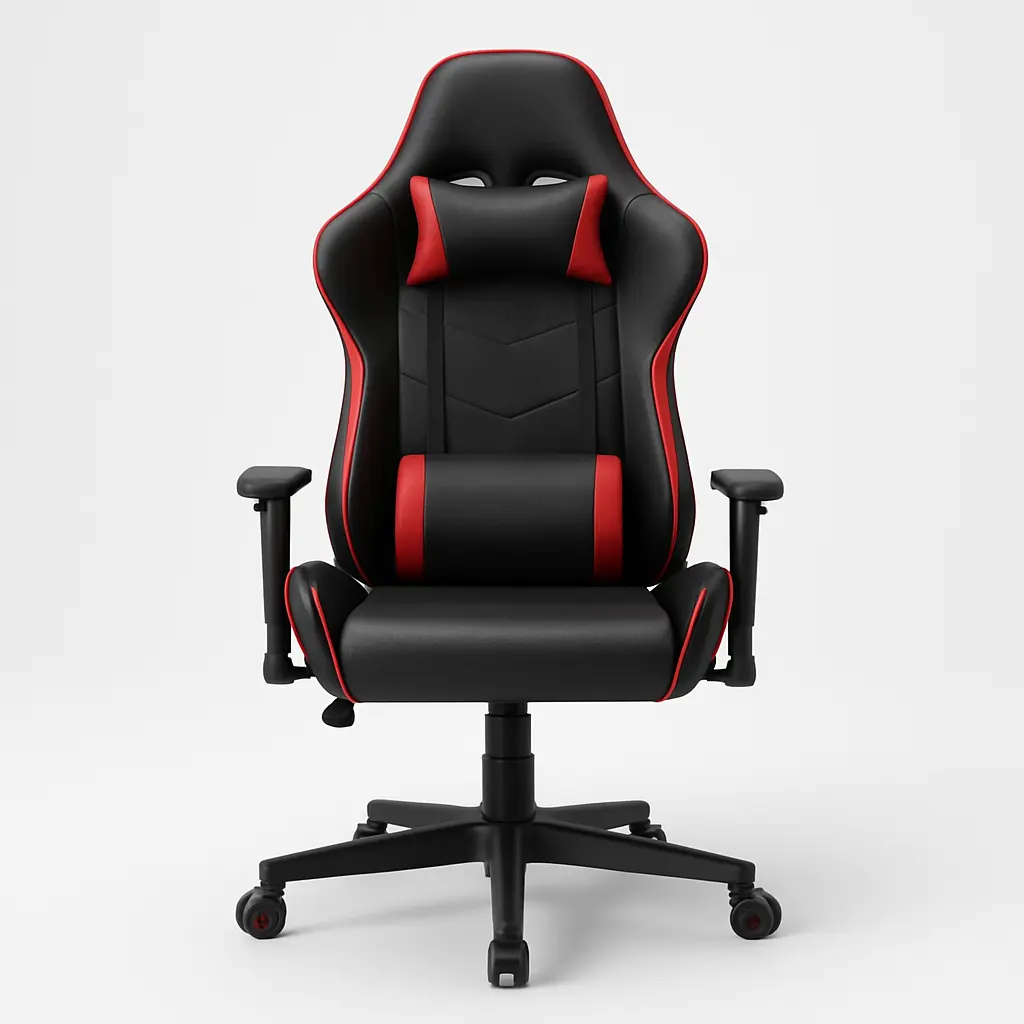 Fotel gamingowy czarno-czerwony z poduszką lędźwiową