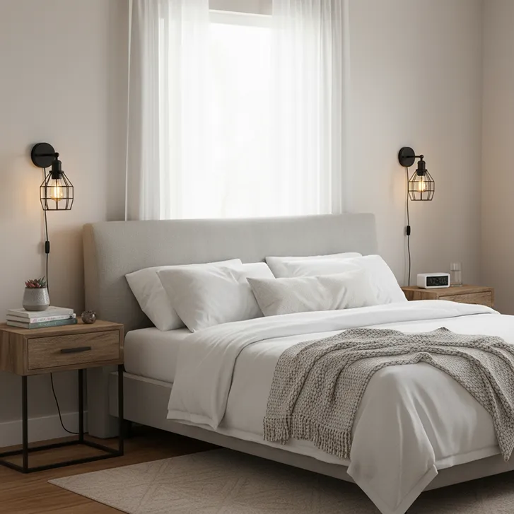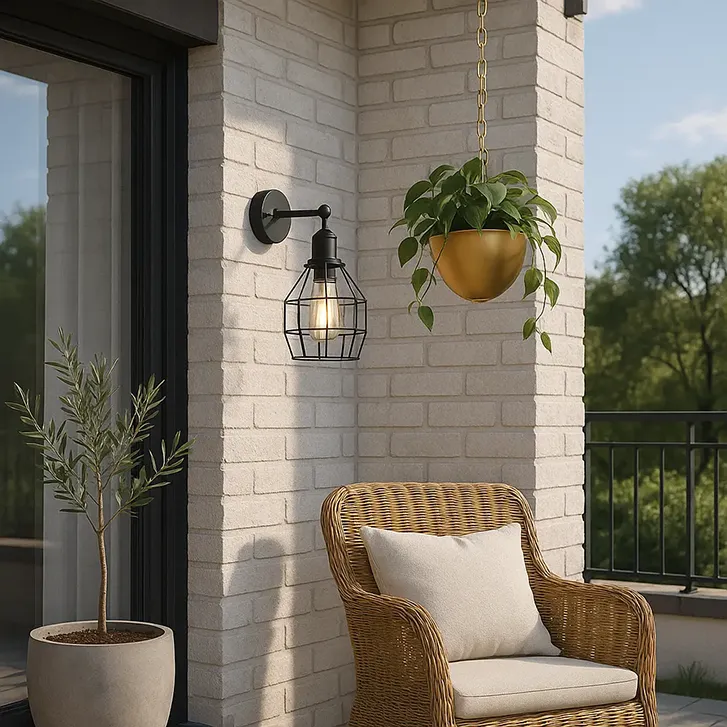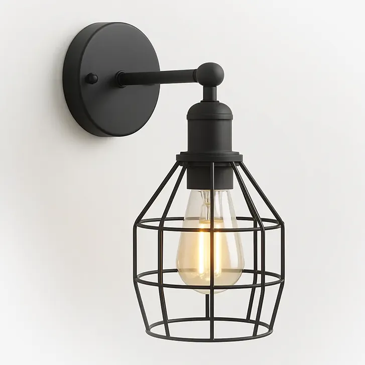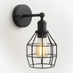 Kinkiet ścienny industrialny czarny z kloszem drucianym