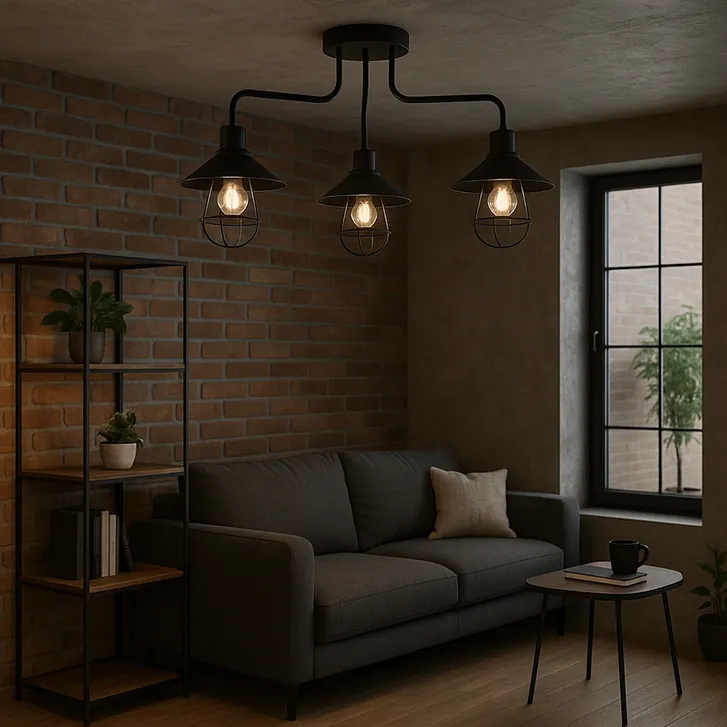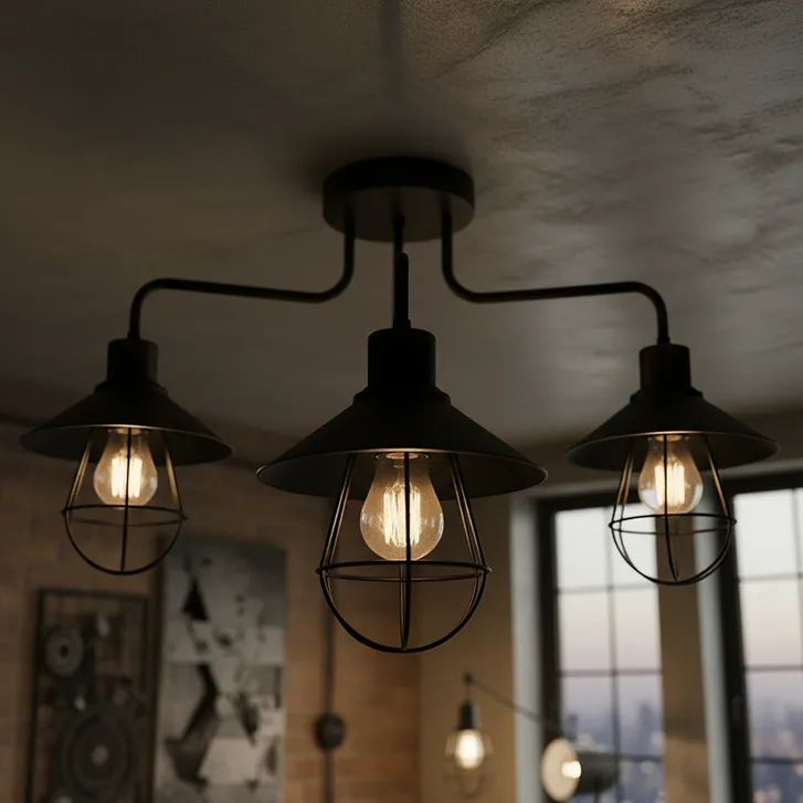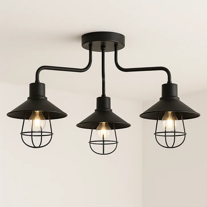 Lampa sufitowa loftowa czarna z trzema kloszami