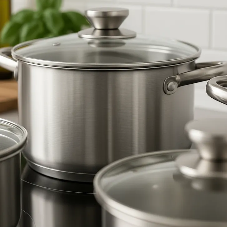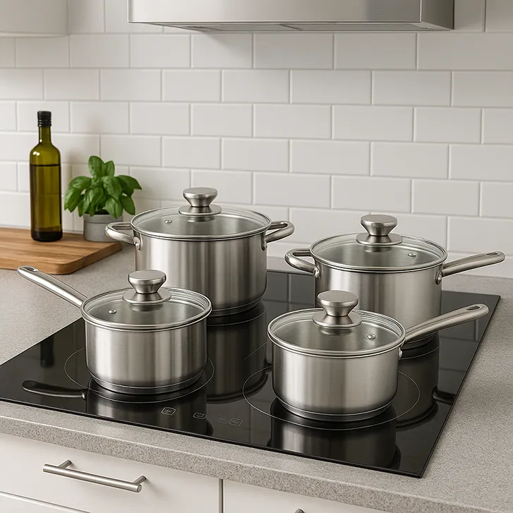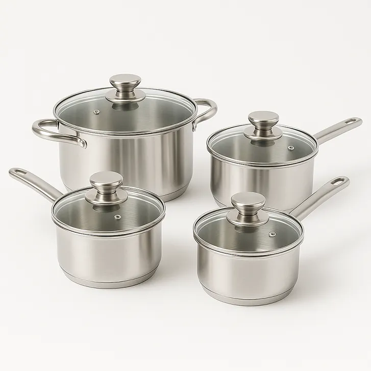 Zestaw garnków stalowych z pokrywkami szklanymi